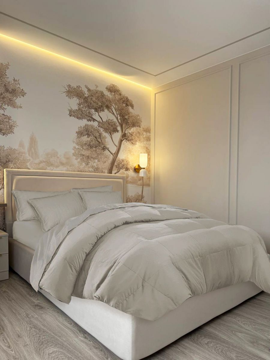 Знаете, бывают такие уголки, которые наполняют пространство особой, трепетной атмосферой. Перед вами - именно такое пространство, оформленное нашей ECO фреской с изображением леса (Арт. 34090). Кажется, стоит лишь протянуть руку, и коснешься прохладной коры дерева, услышишь шепот ветра в кронах, почувствуешь мягкость лесного мха под ногами. Обратите внимание на тончайшую игру оттенков: здесь нет резких контрастов, лишь плавные переходы, напоминающие игру света, пробивающегося сквозь кроны деревьев. Без сомнений, в этой спальне будет приятно просыпаться, проводить вечера в уютном кресле, наслаждаясь видом на живописный пейзаж!