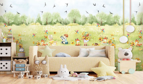 Дизайны из коллекции «Little friends» могут быть выполнены на любой текстуре фресок и фотообоев, в том числе и единым полотном (без стыков) до 50,0 х 3,18 м. Особенно рекомендуем использовать в оформлении детских комнат бесшовные обои и фрески ECO. Наши материалы ECO абсолютно безопасны и имеют «Экологический сертификат соответствия», поэтому Вы можете монтировать их в детской и быть спокойны за здоровье малышей.